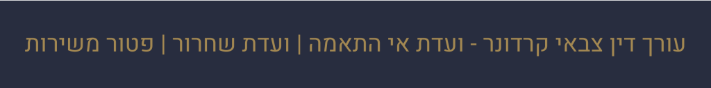 המסגרת הצבאית אינה מתאימה לכולם. אם אתם רוצים פטור משירות צבאי, או תוהים איך אפשר לצאת מהצבא בצורה חוקית – אתם זקוקים לייעוץ משפטי שידריך אתכם. משרד עו״ד צבאי קרדונר, בעל ניסיון של מעל 40 שנים בדין הצבאי, מתמחה בליווי מלש״בים המעוניינים בפטור משירות, ובסיוע לחיילים הנמצאים בשירות סדיר ומעוניינים להשתחרר מהצבא דרך ועדת אי התאמה.