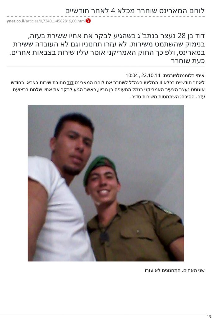 YNET – ייצוג חייל מארינס שנעצר בגין השתמטות מצה"ל